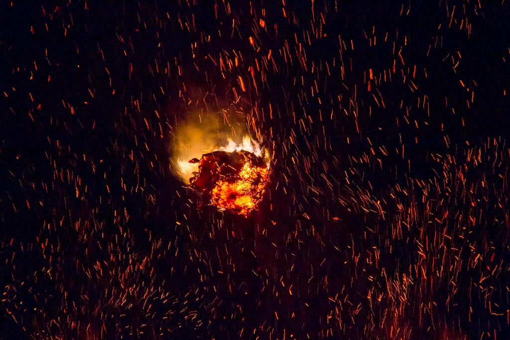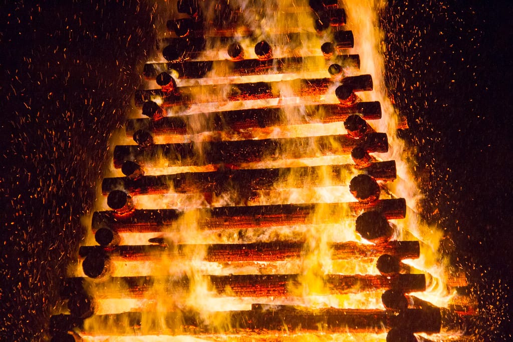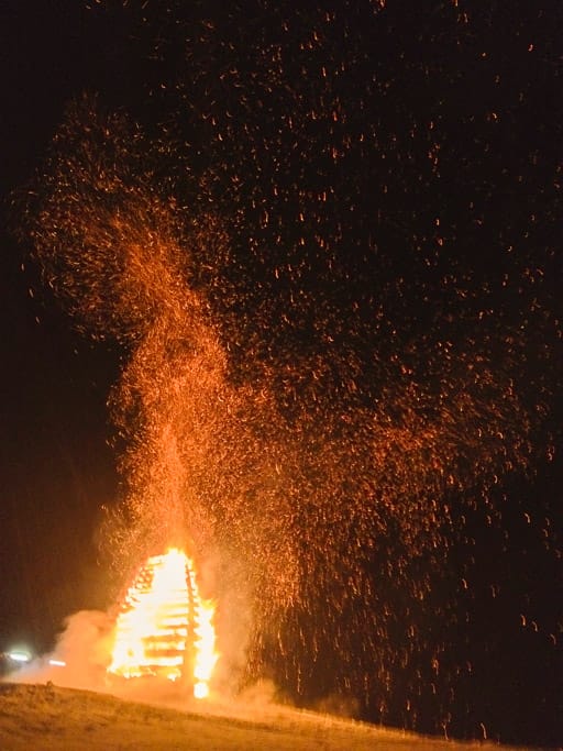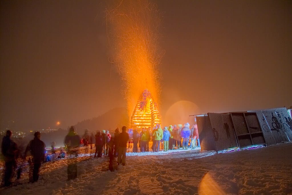 Alemanische Brauch: Das Funkenfeuer wird entzündet um den Winter zu vertreiben und böse Geister abzuwehren.